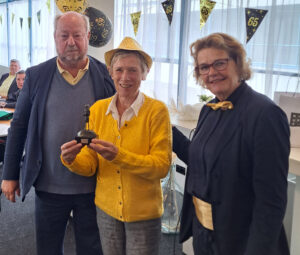 Van links naar rechts: Jos van Dijk (bestuurslid district G&O), Marjo Epskamp, Renée Dirks (voorzitter BBV).